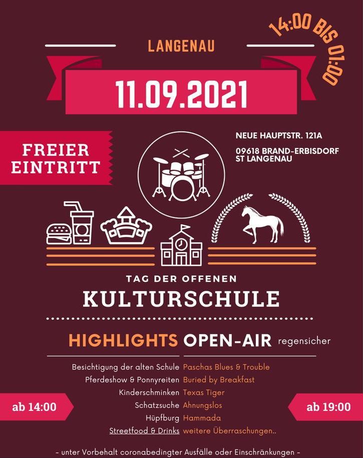Der Tag der offenen Kulturschule in Brand-Erbisdorf im OT Langenau war für uns ein besonderer Tag. Mit Tanz und Gesang und vielen Attraktionen für Groß und Klein lud der Verein "Kulturhaus Alte Schule Langenau e.V." alle Besucher ein.